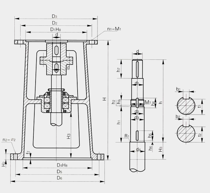 JXLD型 d JBLD型 d d1 M1 d2 d3 d4 R1 t1 b1 t2 b2 h1 h2 h3 h4 h5 h6 h7 h